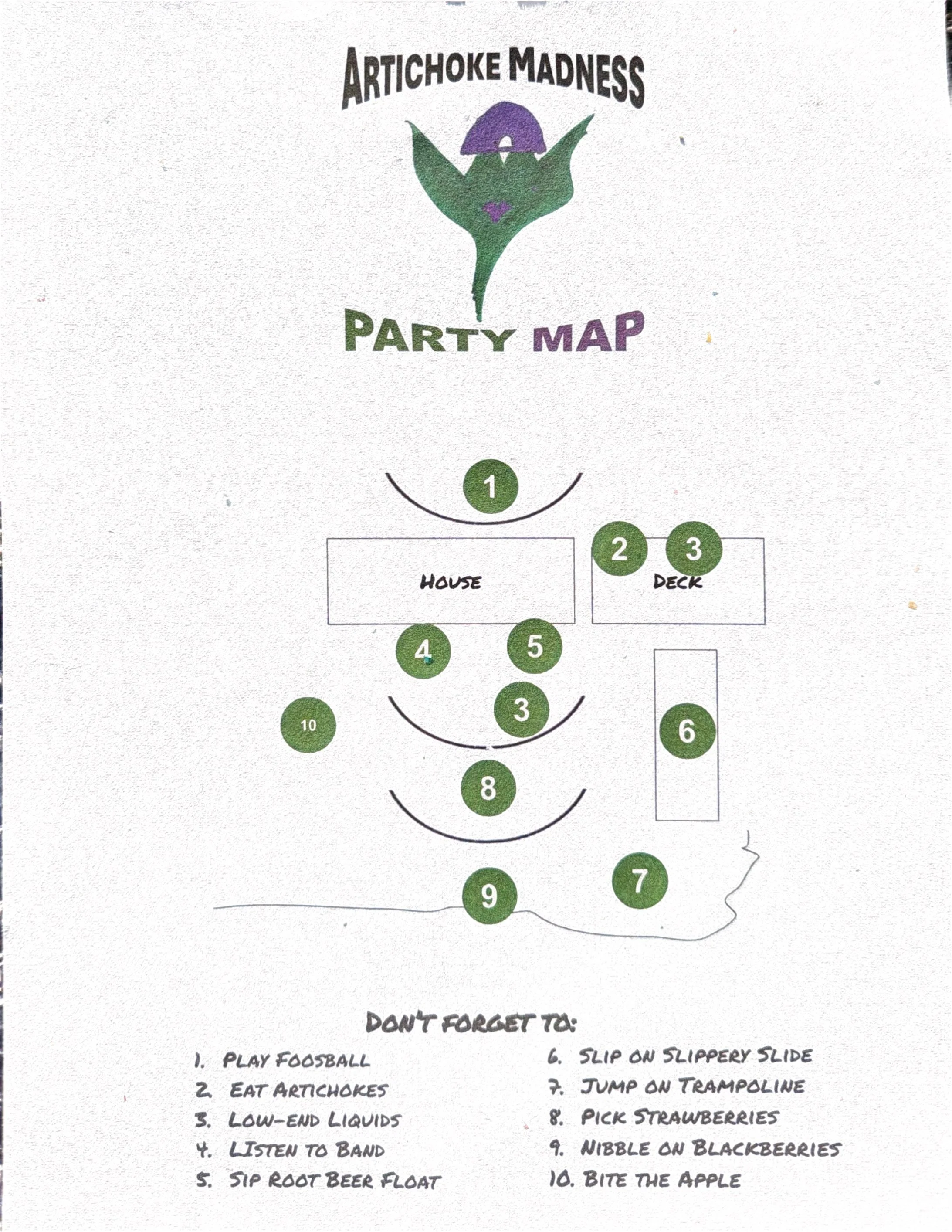 We brought back the Party Map to make sure everyone knew the 10 key party stops they needed to make, including stops at the blackberry and strawberry bushes and the apple tree.