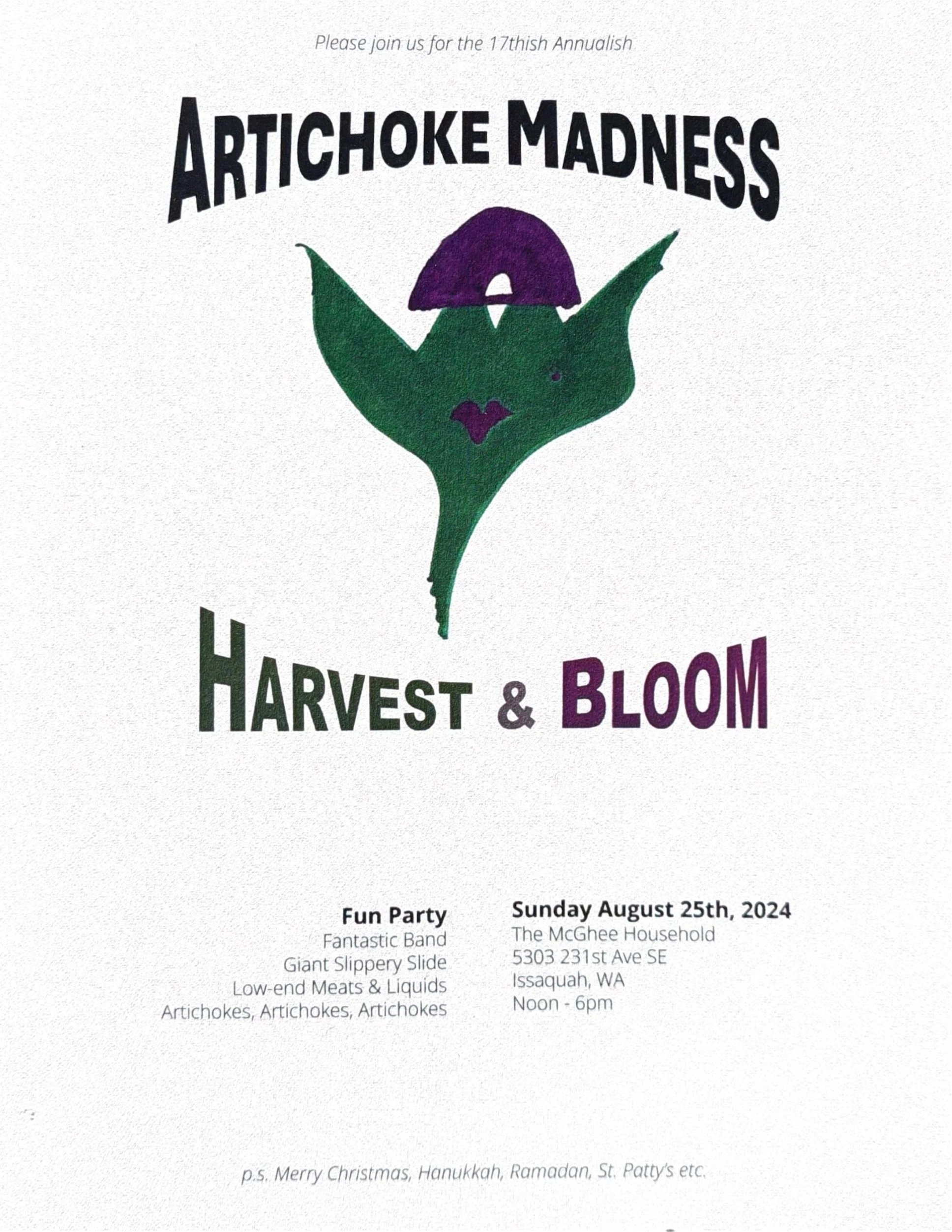 Interestingly, if you don’t harvest artichokes they bloom into beautiful purple flowers. Much like with our kids - our work raising them is mostly done. The harvest is in and now we watch them bloom.