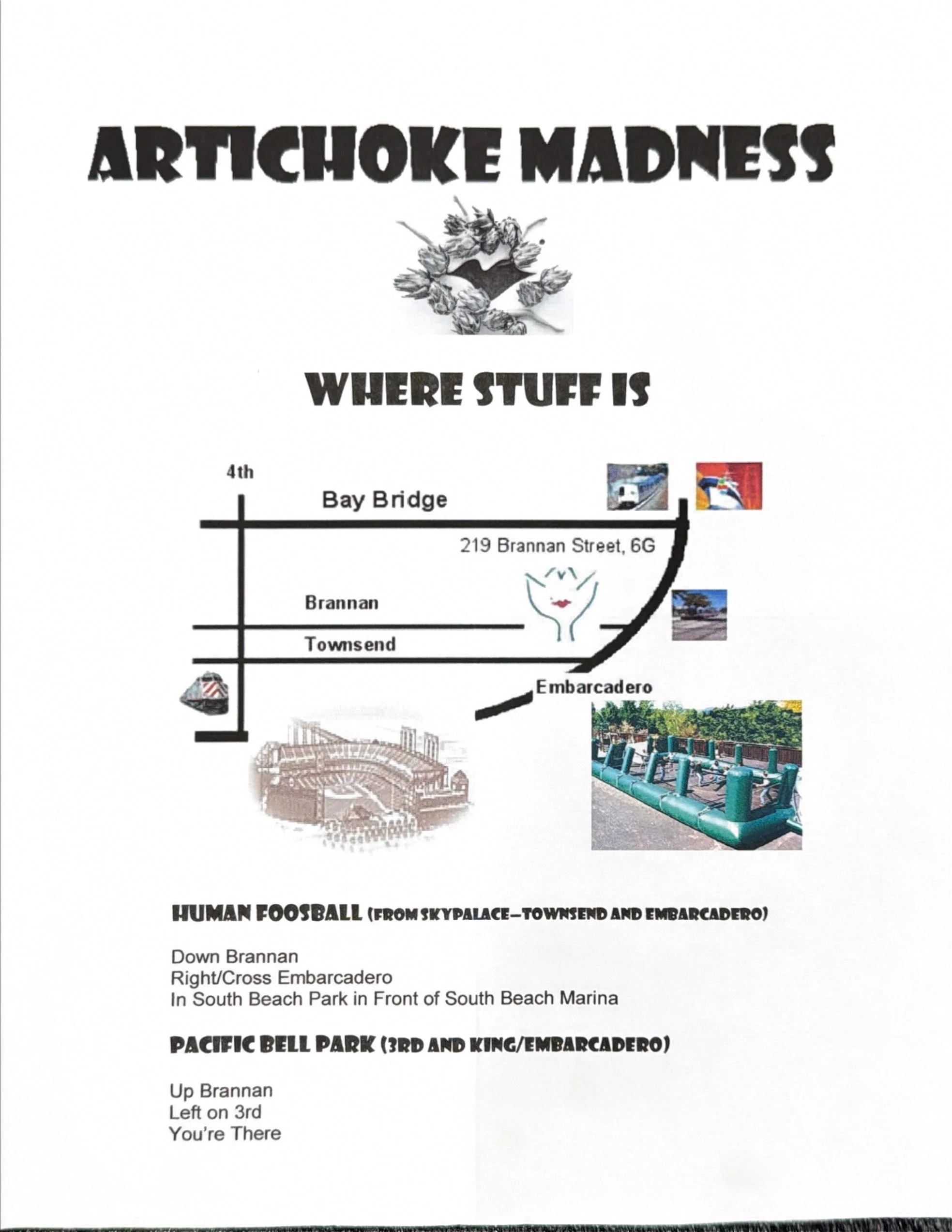 Another nice touch to help shape the path for guests to come was a map showing where everything was in advance - the main party, the human foosball court, the ball park and where all the public transportation drop-offs were (Cal Train, Bart, Ferry and Light Rail).