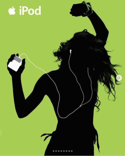 The other fun thing was we made each invite unique by adding the high-contrast white by hand as teeth (teeth together when you’re eating an artichoke leaf!) and dotting the “i” in Lips. This was a year before Apple began its famous silhouette ad campaign (example below) where they used this same technique. There were some Apple folks at my party (looking at you Sharon and Susan) - was this invite the spark?